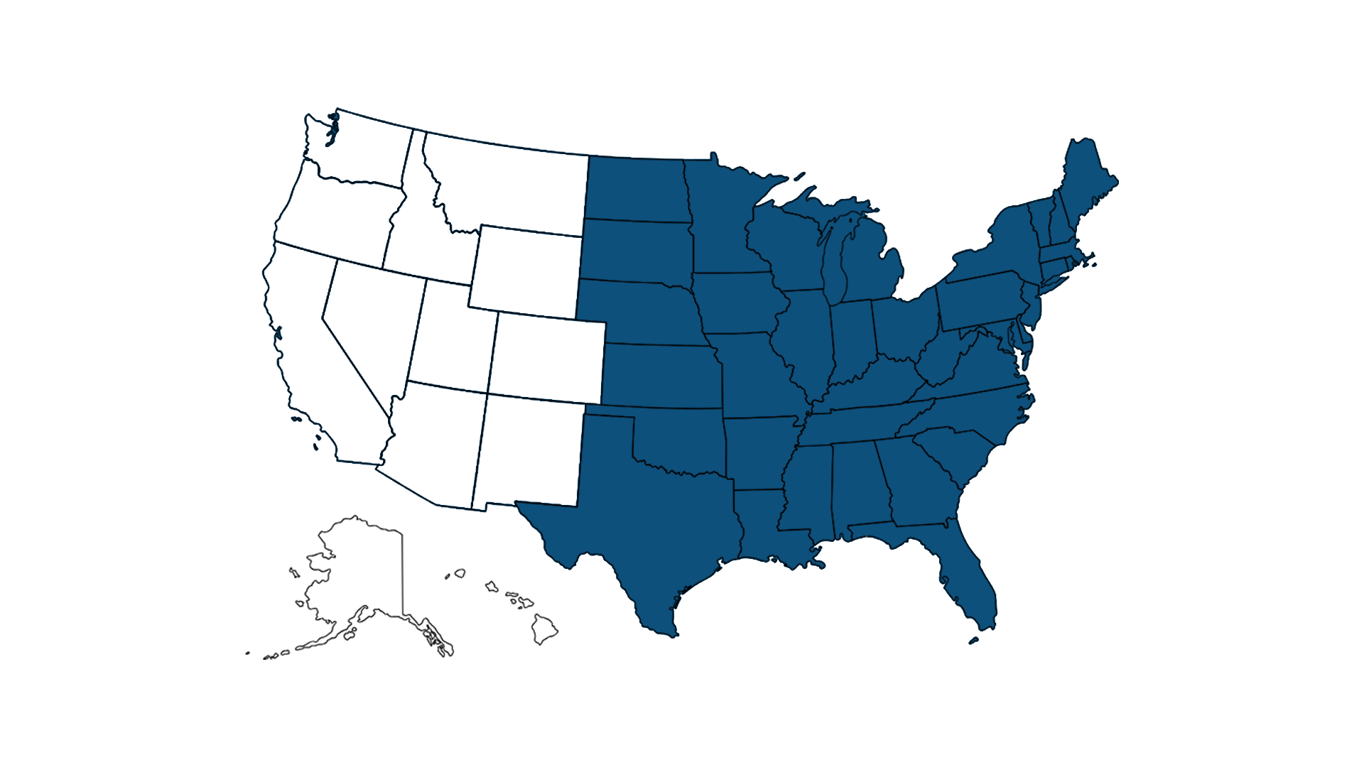 We are happy to support the entire Central & Eastern regions of the United States. If you do not see your area below, please reach out as we may be able to support your needs.