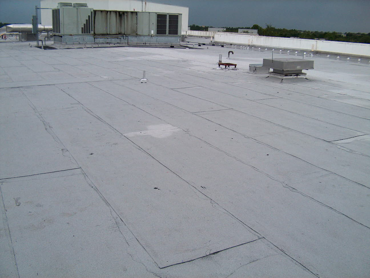 Infrared Thermography is a non destructive form of testing which can be performed without cutting into or damaging the surface of the roof assembly. An Infrared can be performed in a timely manor and can provide clear and precise insight on whether or not entrapped sub strata moisture is present as well as the amount of entrapped moisture being held in any given location. When insulation becomes saturated it not only poses serious problems with the roof system it also decreases the R-value or insulation value of the existing insulation.